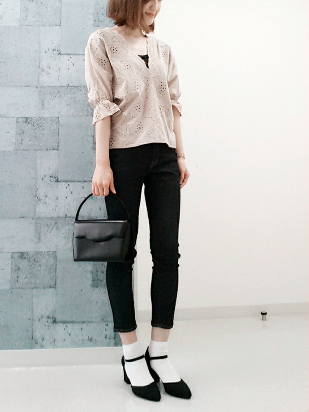 つがるのシャツ/ブラウス「Vネックスカラレースブラウスプルオーバー」を使ったコーディネート
