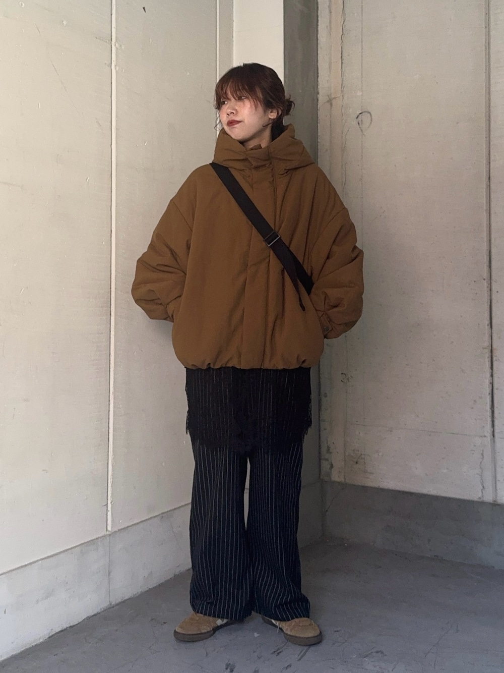 tsu(THE GOODLAND MARKET堀江)のブルゾン「『別注』MIDIUMISOLID×THE GOODLAND MARKET hooded padding blouson」を使ったコーディネート