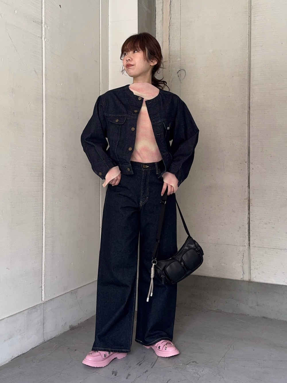 本日発売の LEE 101 × URBAN RESEARCH👖🎀◝✩ LEEのデニムは柔らかくて肩肘張らず着れるのがいい とはいえ、デニムのセットアップのかちっとした雰囲気に 春らしいピンクのインナーとローファーを合わせました🐷