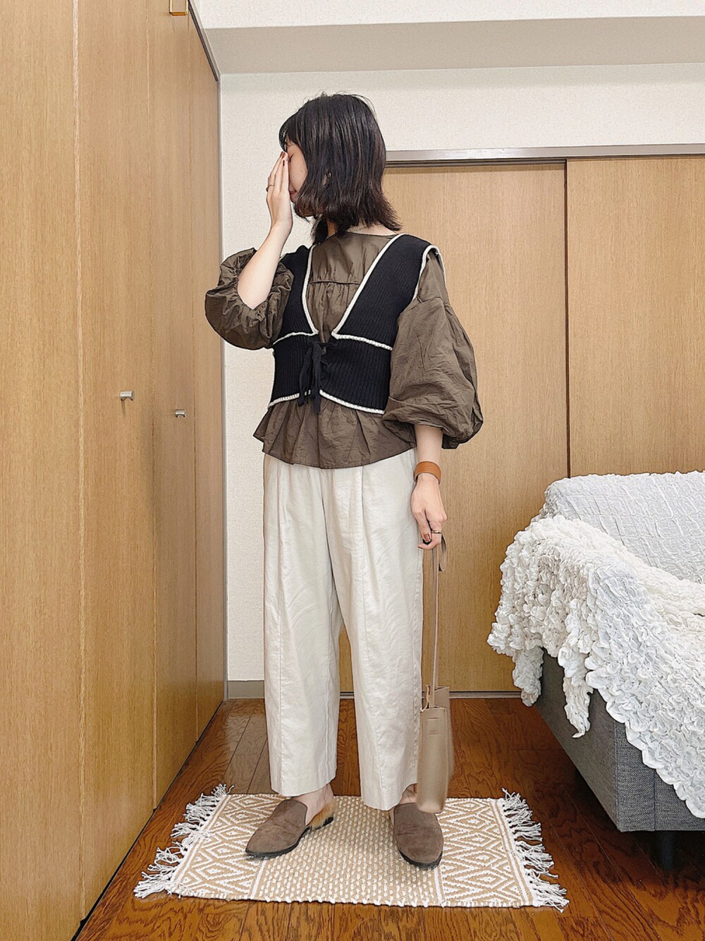 今日も涼しいですね🍁 このまま寒くなっちゃうのかな🥲 昨日とか今日の気温って 何を着たらいいかわからないですよね 涼しいけどどれくらい重ね着すればいいのか… ブラウスやシャツだと長袖でも 寒いかも、と不安な時に ベストやビスチェを重ねるとちょうどよかったりします😊 レイヤードも楽しめておすすめです🙌 shoes: ORiental TRaffic