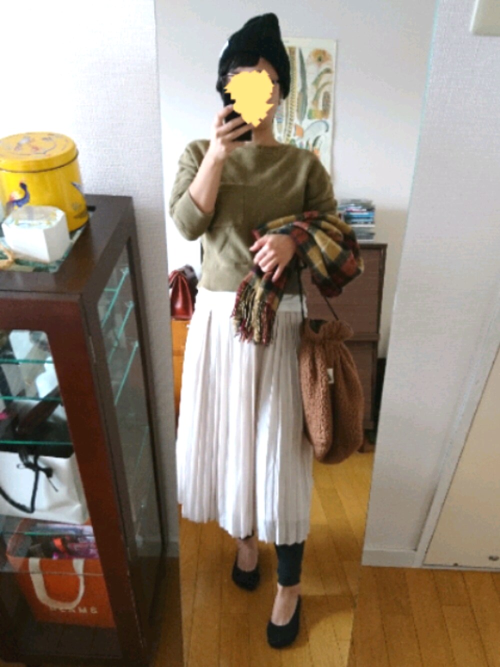 過去にほぼ同じかっこしてるんで、とりあえずストールで違いを出してみました。 前日の残り物の鍋をアレンジしたような気分。