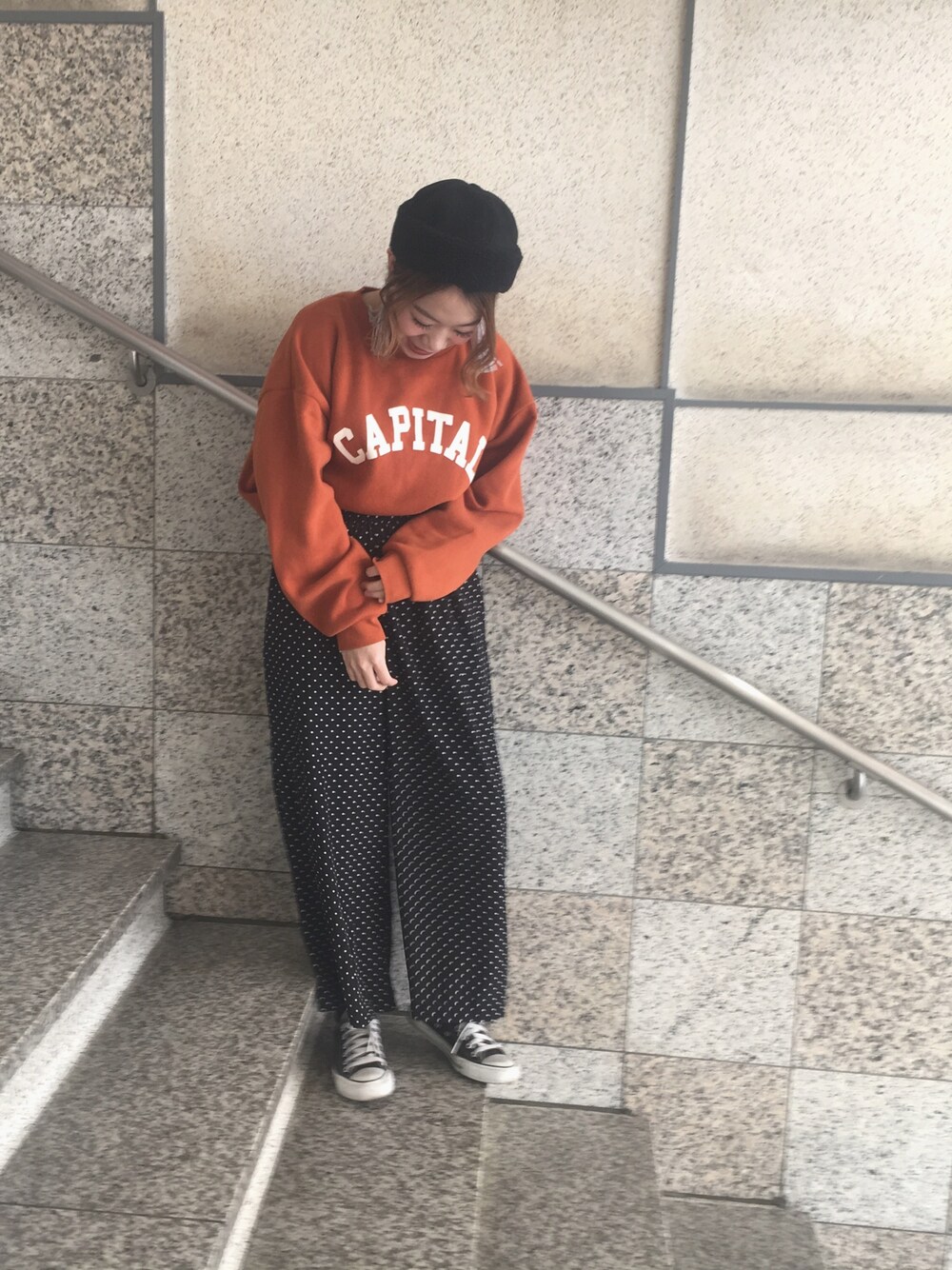 オレンジ🍊好き♡ ゆるっとしたサイズ感のトップスが 可愛くて(o^ω^o)♡