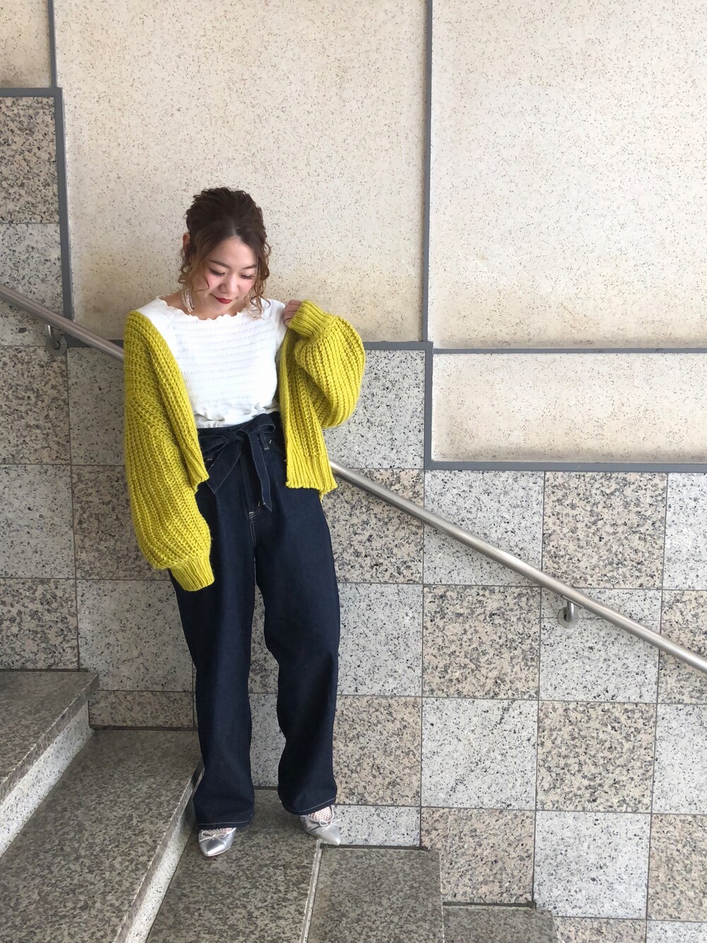黄色のカーディガンは 丈感が短いんだけど その感じがお洒落で可愛い🙆💕 色もイエローが可愛い♡ 袖のダボッと感も100点♡