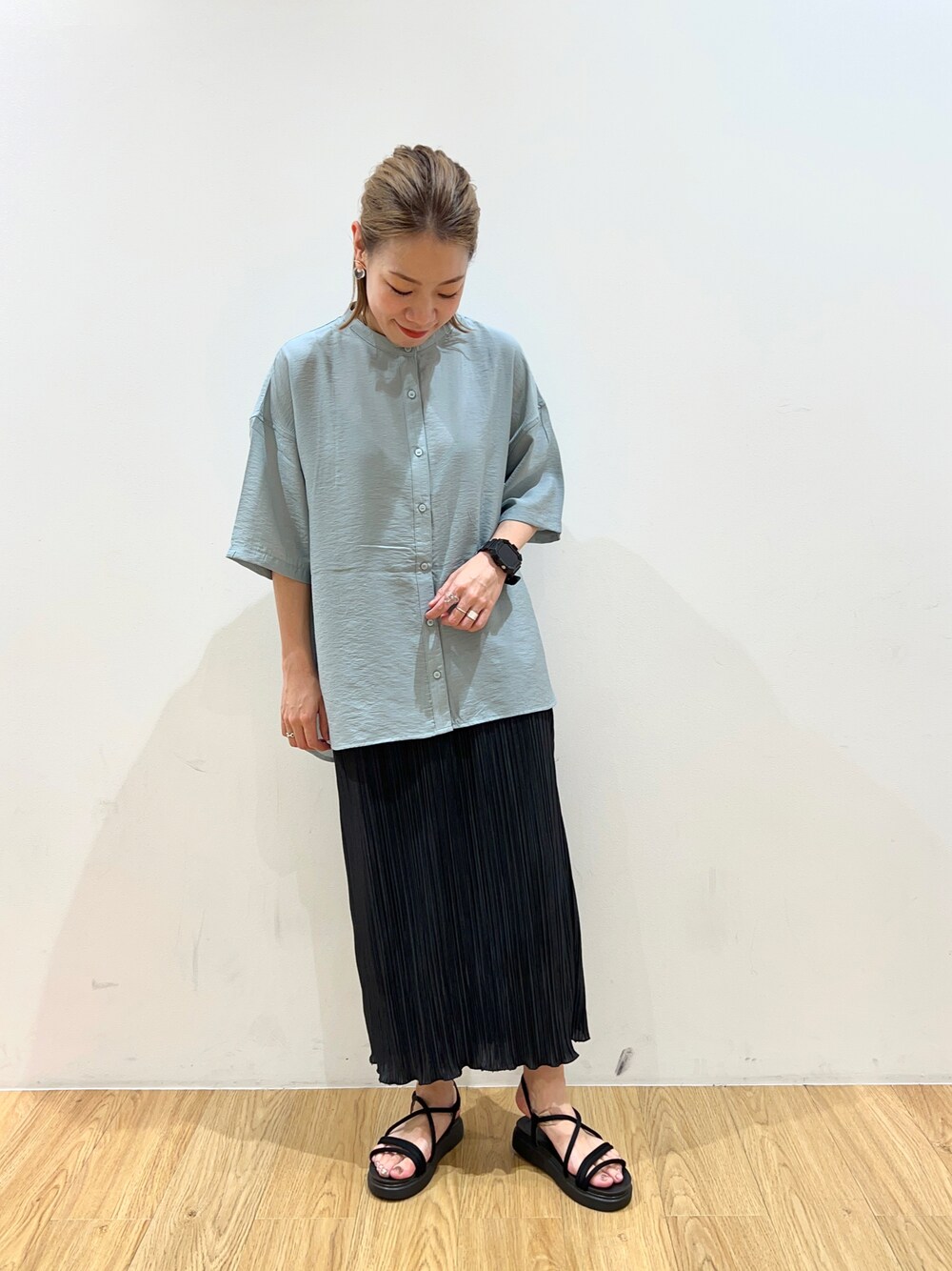 このシャツ、前回も載せたけど本当使ってる🥹❤️ バックフリルが可愛いし、前丈が短いからこーやってスカートでも合わせられる🥰❤︎ 本当1枚でお洒落なシャツです🥰 スカートも形が綺麗で、凄い着用してます😌✨もーすぐ夏が終わっちゃうの悲しいけど今夏物安くなってるからゲットするチャンスです☺️✨✨✨