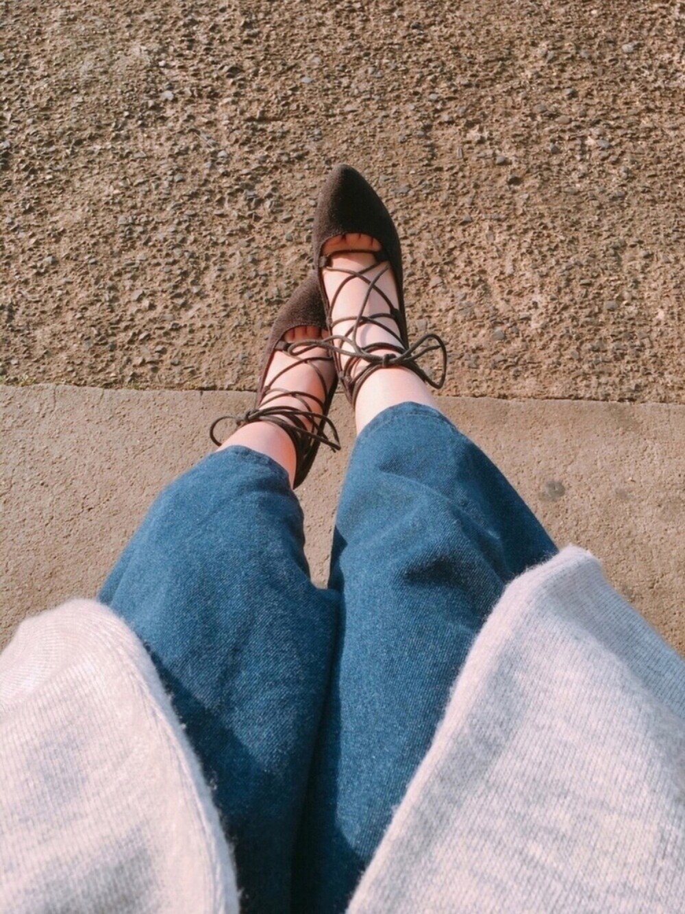 菜々のパンプス「◆新色追加◆[スエードタッチ]チャンキーヒール・レースアップパンプス/ギリーサンダル」を使ったコーディネート