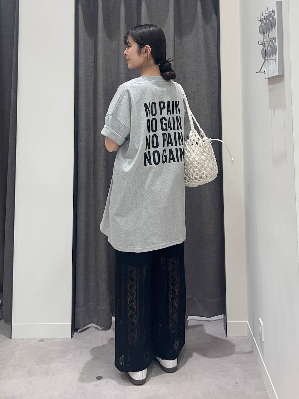 tsukemonoemi(LOWRYS FARM アミュプラザおおいた)のトートバッグ「マクラメキンチャクツキトート 284437」を使ったコーディネート