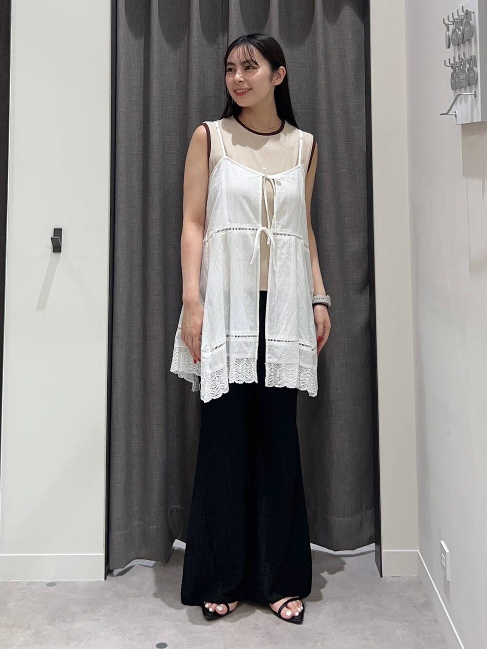 ご覧いただきありがとうございます! 身長160㎝・骨格ストレート スタイルアップコーデ!🤍 ウエスト全ゴムのパンツは美脚効果抜群!楽ちんなのにフレアシルエットのため、形がとにかく綺麗でスッキリ見えます!真夏のデートコーデにもっ! 2枚目に動画があるのでぜひご覧下さい...♡...
