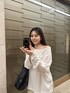 私のリアルバイコーデ!🤍 ホワイトコーデは、シンプルだけど気分が上がって女性らしくなります!肩を少しだして、抜け感を出しました!この着方1つで上品に見えるのでオススメですっ!🫶🥹 ご覧いただきありがとうございます! 身長160㎝・骨格ストレート