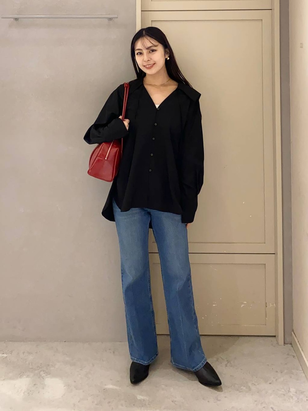 秋といえばブラウス!🤍 程よい硬さで、気になるラインを隠してくれるシャツ!顔周りがV開きになっているので、スッキリ見えます!アウトスタイルで、スッキリ見える秋ブラウスですっ!✨ ご覧いただきありがとうございます! 身長160㎝・骨格ストレート