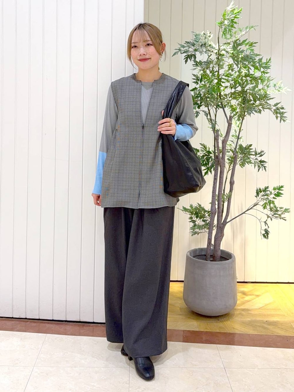 [2枚目に着用動画あります☃️] 《tops》 配色がとても可愛いインナー🩵ベストなどで合わせてがっつり見せても可愛いですが、パーカーやトレーナーのお袖から色を少し見せてあげても可愛いです✨ ベストは、Vネックなので顔周りもスッキリ見せてくれますよ👀インナー次第でオールシーズン使えるアイテムです🌟 《pants》 綺麗目なワイドパンツ‼️ウエストゴムでとっても楽!! さらっとした素材感でシルエットも拾わないので履きやすいです♡