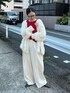 TSUKI(Bab)のカーディガン/ボレロ「【選べる着丈/前後2WAY】ニュアンスハートボタンシャギーニットカーディガン」を使ったコーディネート