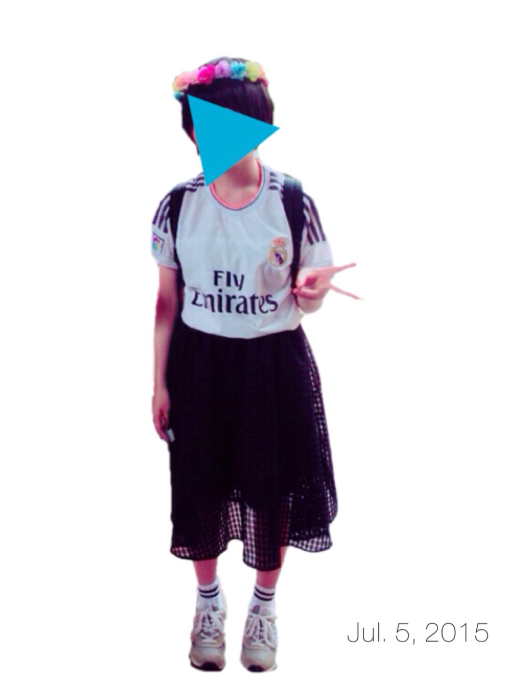 文化祭でした✌️ 友達と双子コーデしました(^ω^) トップスはクラスTシャツです。レアルマドリード。(のファンということではありません笑)