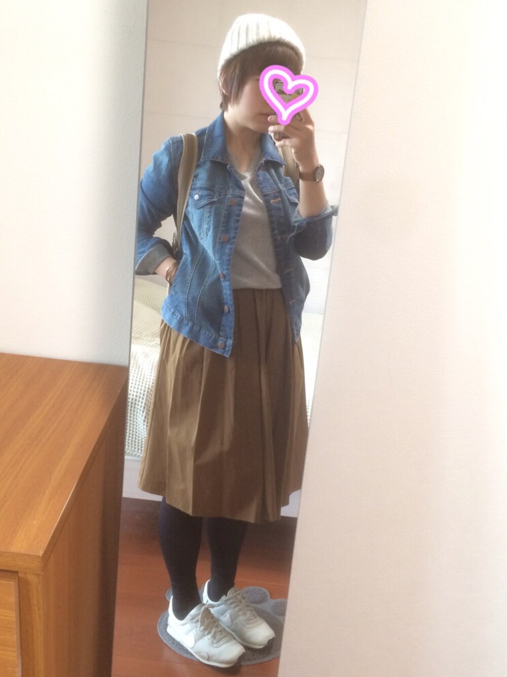 つなこのニットキャップ/ビーニー「ケーブル編みニット帽」を使ったコーディネート