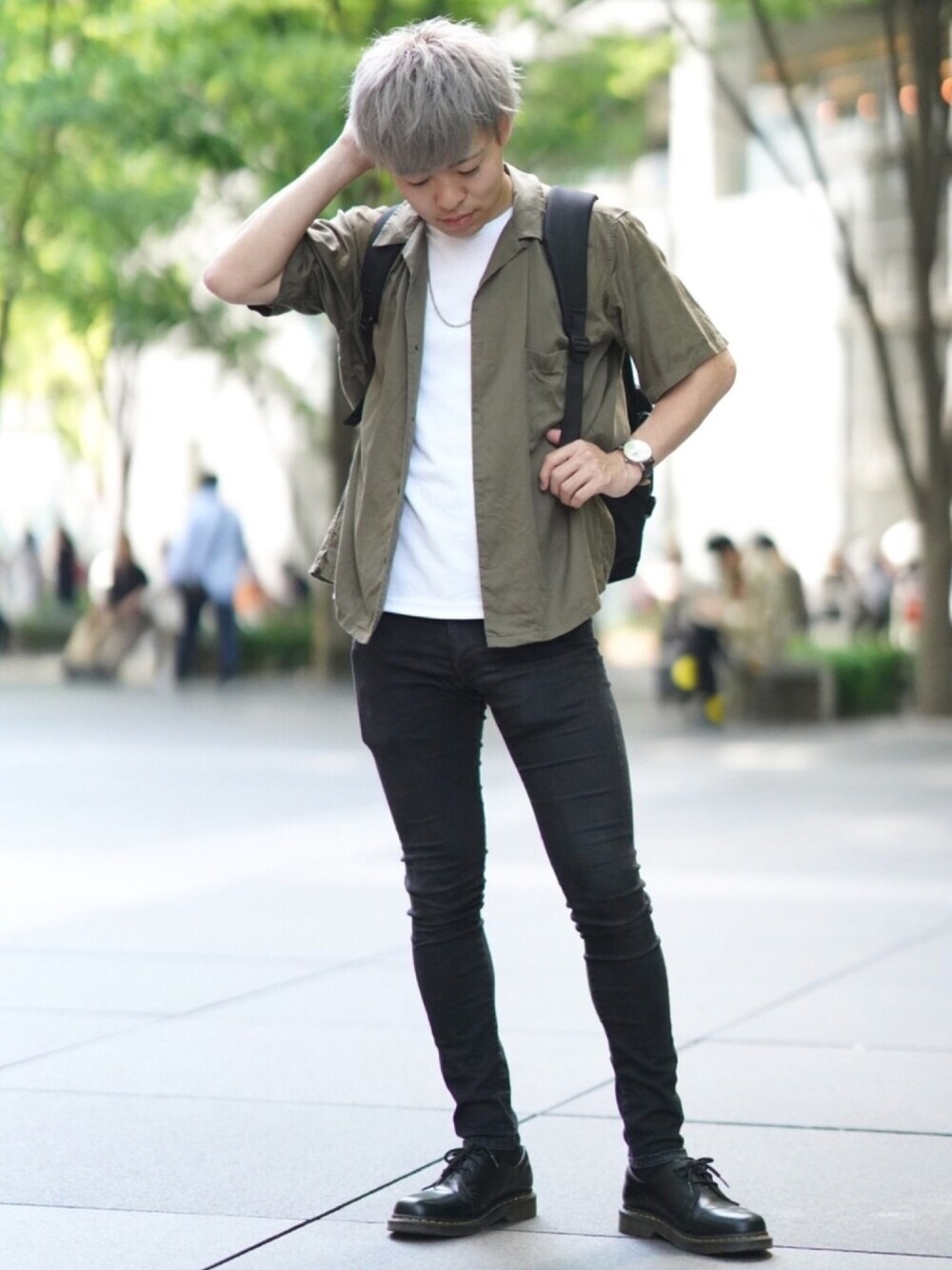 こんにちは、つのです! 撮影者 → tai きれいめシンプルコーデ! 白T×開襟シャツは最強だと思います! モノトーン+1色なので 開襟シャツは何色でも合いそうですね!
