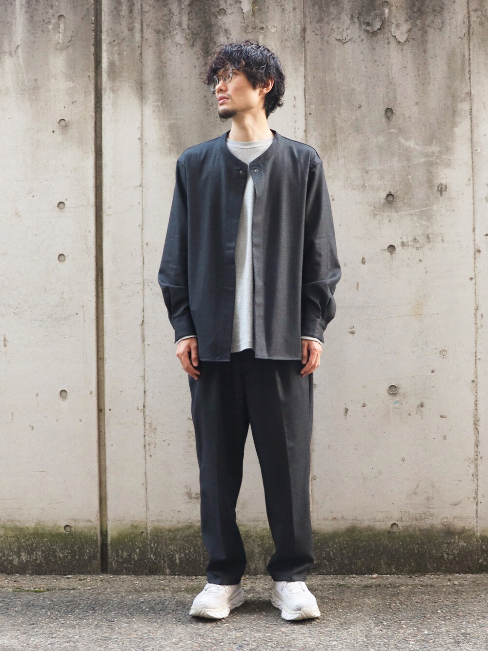 秋のコーディネート。 ゆるゆるりと。 以前にも載せたセットアップの色違い。 今回はグレーのワントーンで。 白スニーカーは万能。 ホカオネオネは最高。