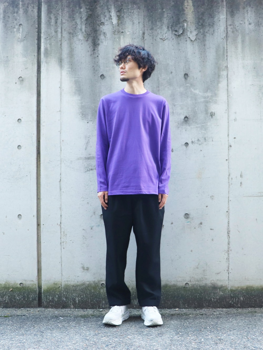 秋のコーディネート。 ゆるゆるりと。 ロンTが活躍する季節です。 1枚でさらりと。 着てみると紫もいいもんです。