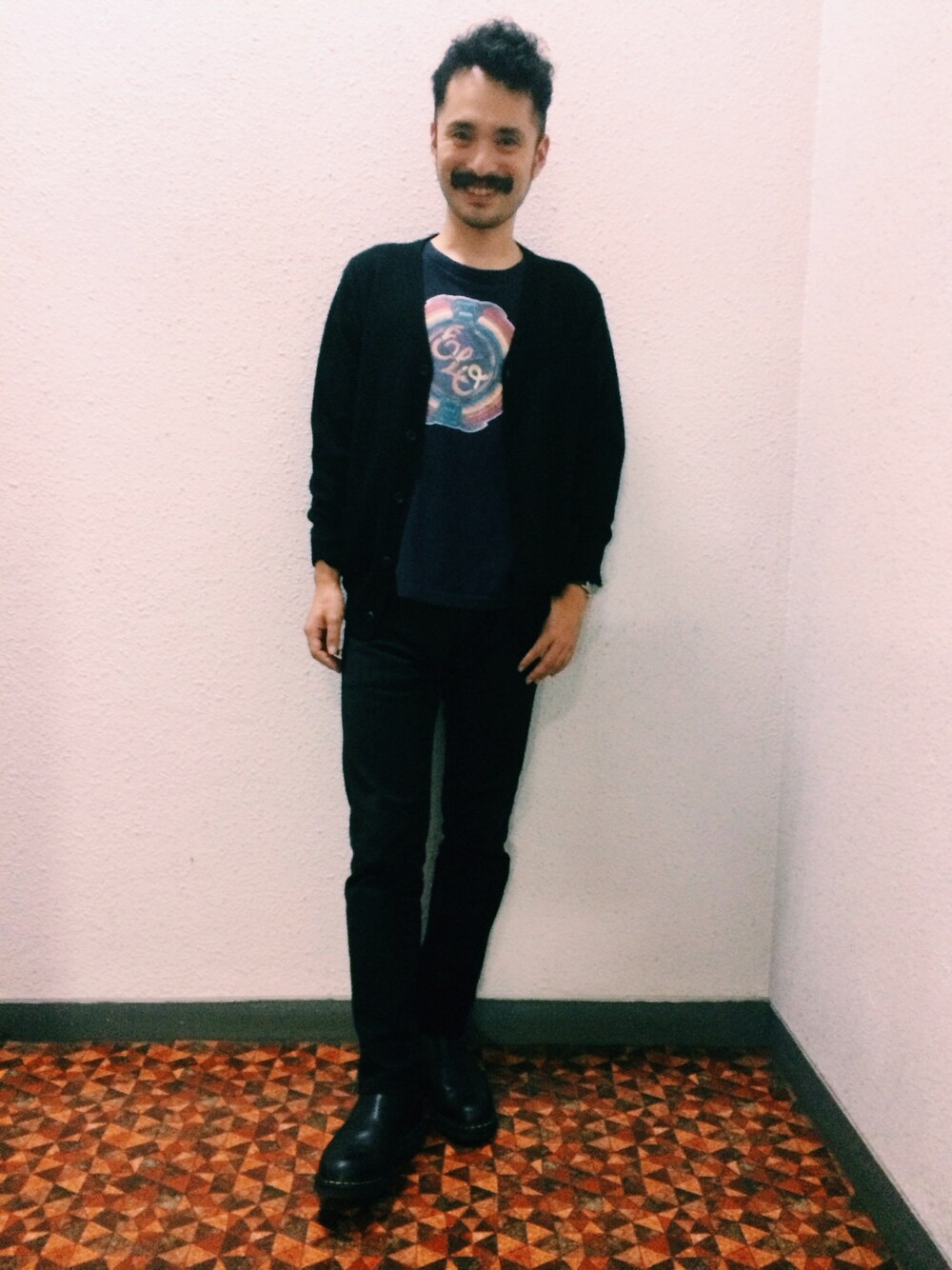 トップスはELOのバンドT。 シューズはパラブーツのサイドゴア。