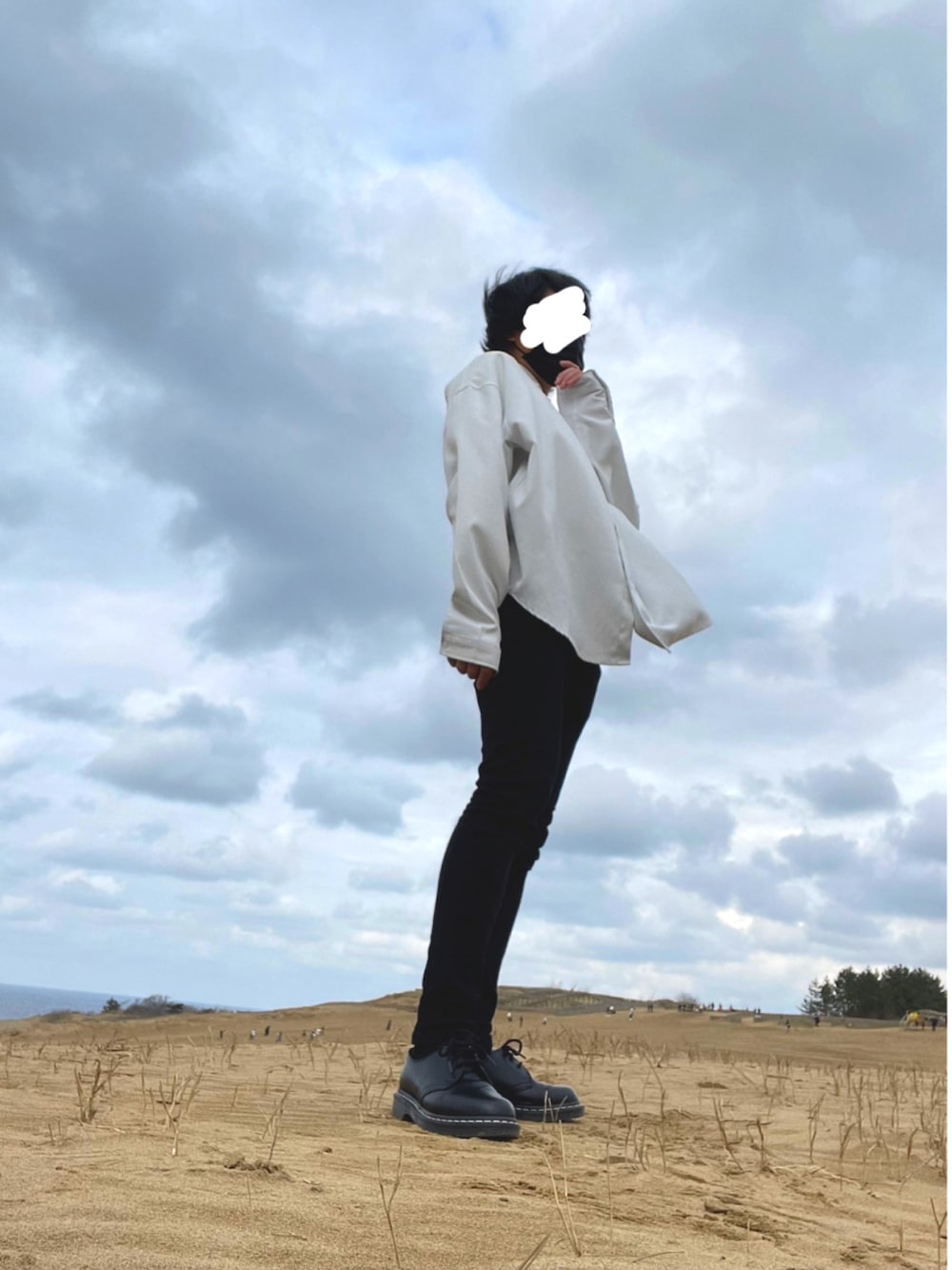 Yシルエットを意識してコーディネートしました。白と黒の色合いでとてもシンプルかつ綺麗めのファッションです!