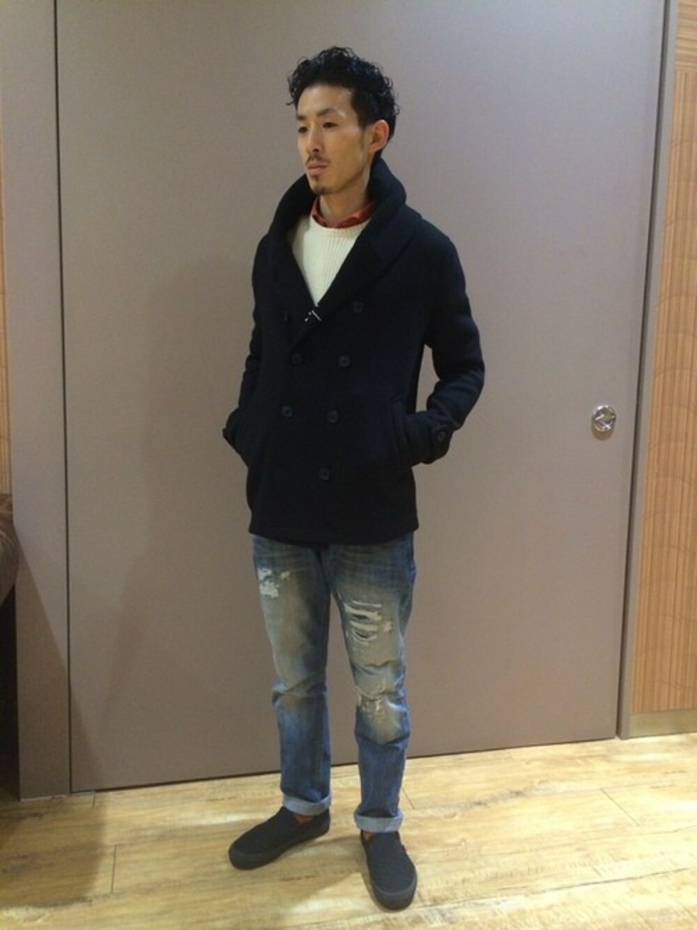 tsuru0913のピーコート「スライバーニットフーデット」を使ったコーディネート