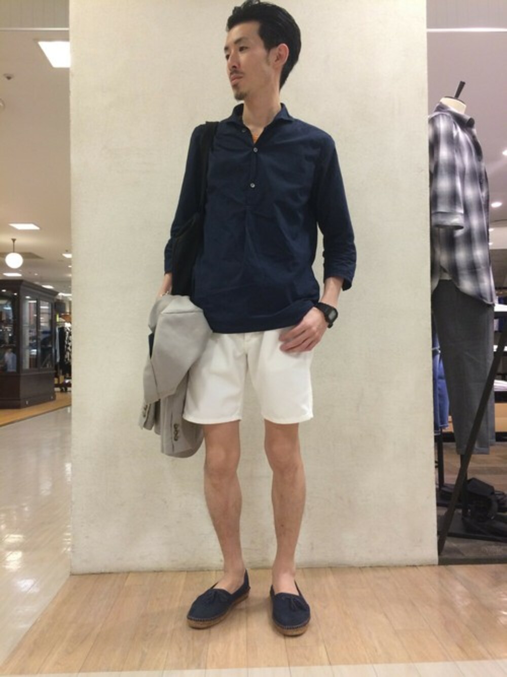 先日の色違いのシャツコーデ。 リゾートSTYLEにJKをラフに。