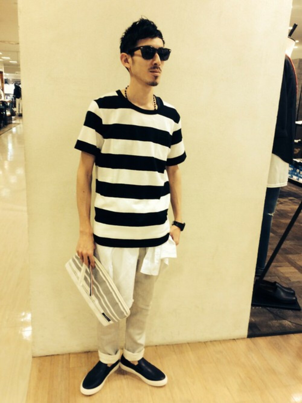 着心地の良いパイル地のようなTシャツをベースにリゾートサーフにコーディネート。 まだまだ夜は肌寒いので、腰に巻いてるシャツはその場に応じて巻いても良し着ても良しのリネンシャツ。