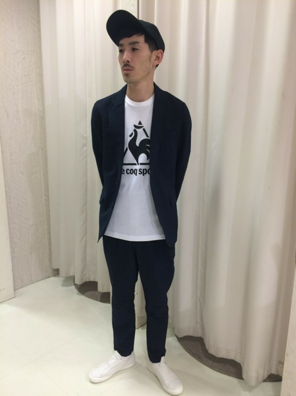 シアサッカーのセットアップ。 インナーにはルコックTでよりスポーティーにしてみました!