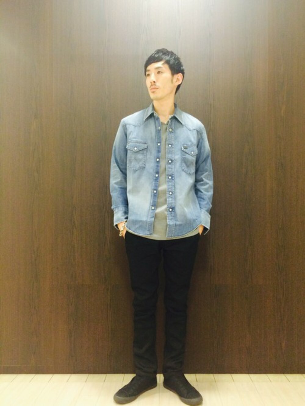 本格的にあつくなってきたので、夏といえばdenim。 ラングラーとコラボしたシャツをメインにコーデ。 海に行く時なんかはショーツなどで合わせたいですね!