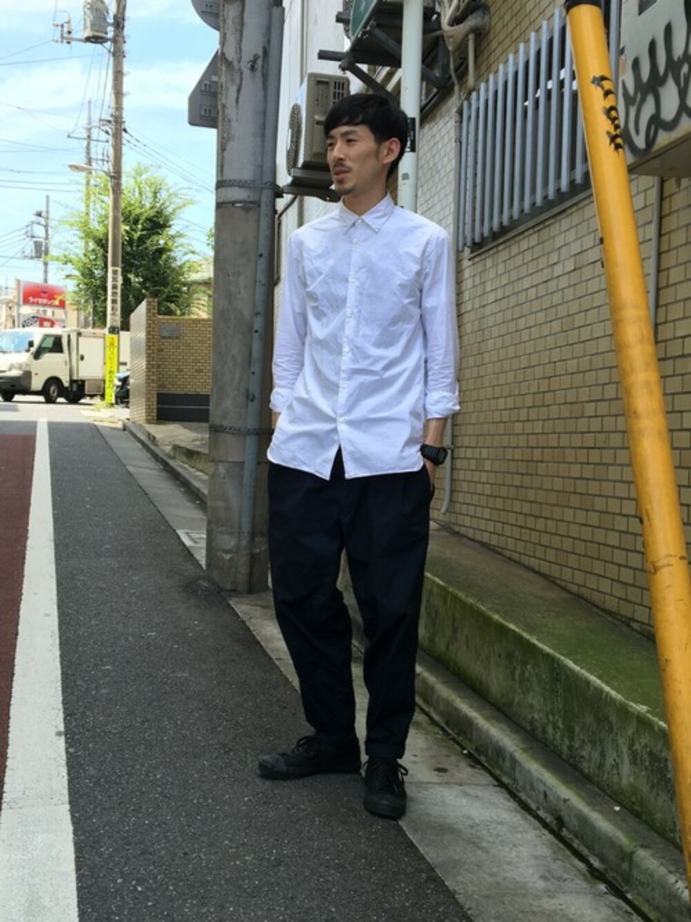 仕事前のラフショット。 今年は長袖コーデにはまってます!! しかし暑いですね!m(_ _)m