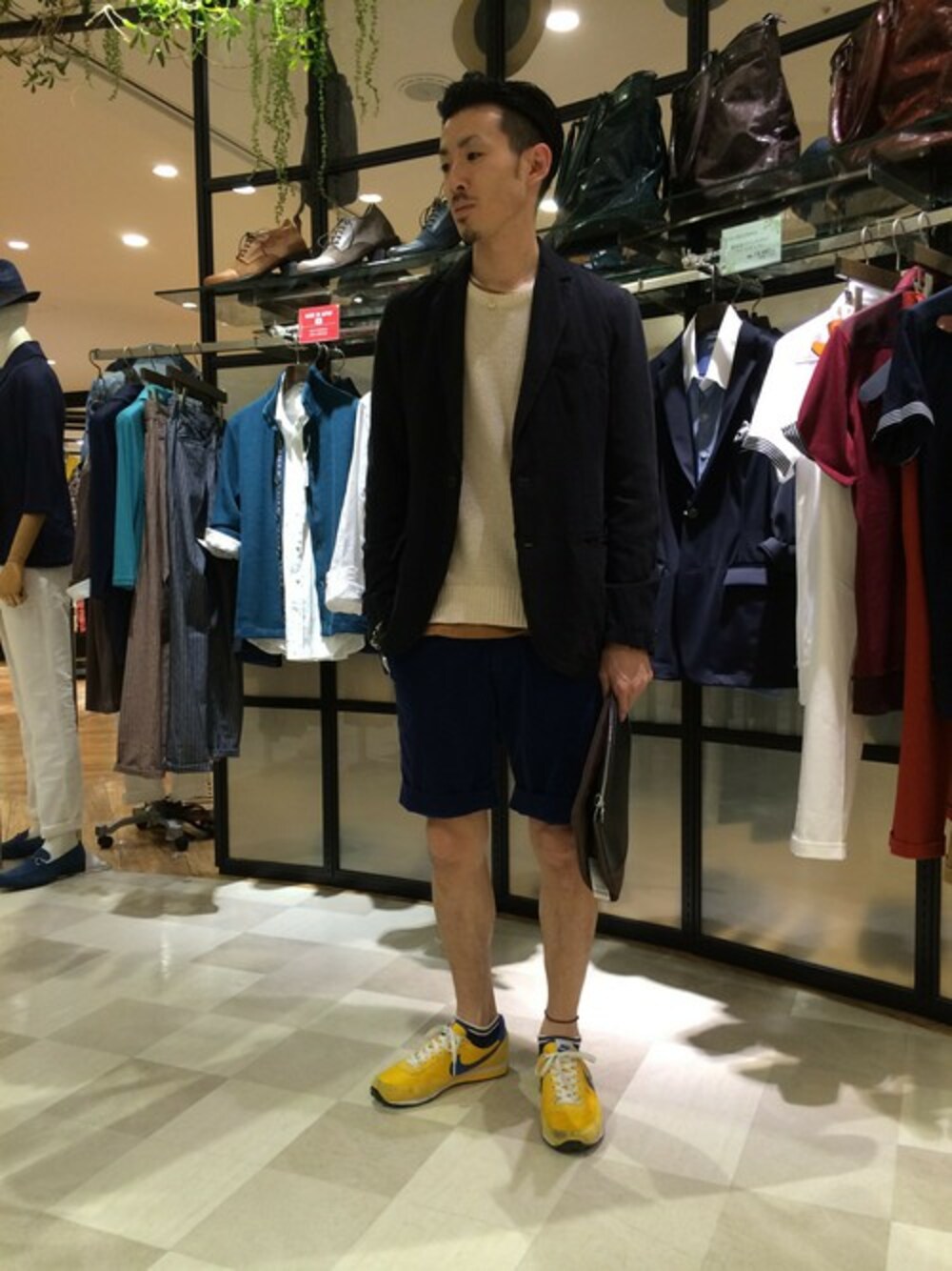 JKはリネンを使ってるので、堅苦しくならず着心地◎ ショーツで全体的に軽くみせました。