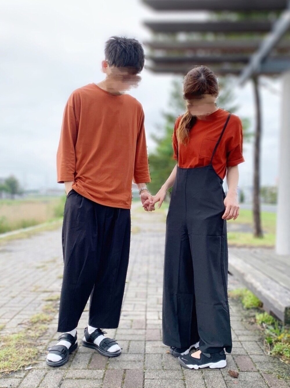 黒×オレンジのお揃いコーデ。 他の方の見てremerのワイドパンツ買っちゃった。やっぱりシルエットがとってもよい。