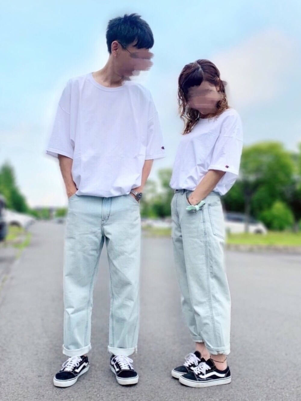 チャンピオンのビックシルエットTシャツ。 今回も純度100%のお揃い。 珍しくウエストインしたけど、脚の長さ同じに見える…。