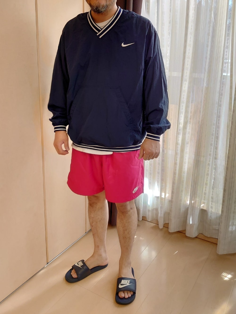 見て頂きありがとうございます。 全身NIKEのネイビーとピンクのコーデどうでしょうか? ほぼ部屋着ですが… 笑 ちょっと自販機へみたいな~