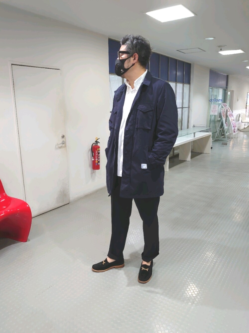 見て頂きありがとうございます。 大人カジュアル的に白シャツにスラックスとローファー 肌寒いのでロンハーマンのミリタリーコート着ました。