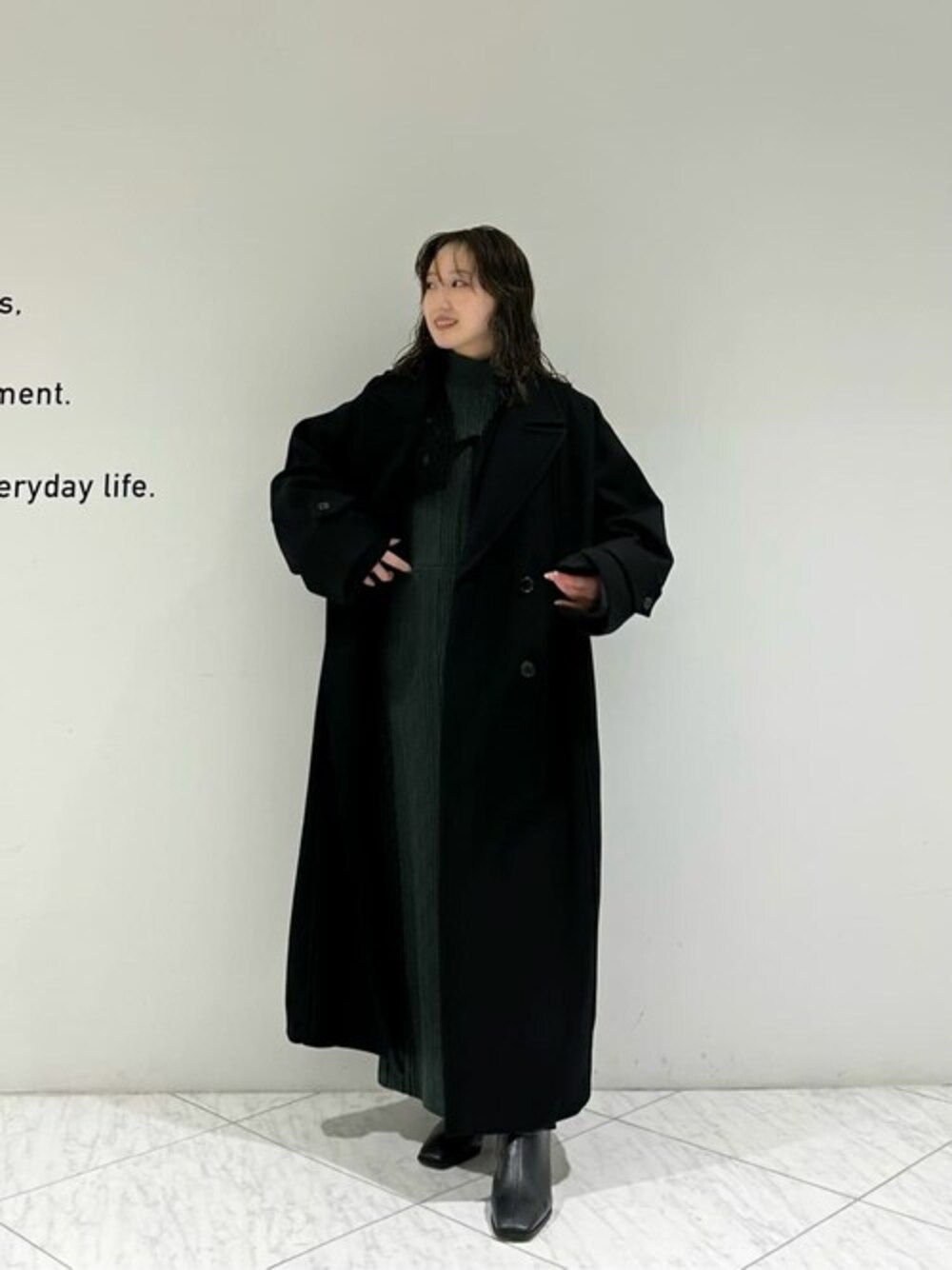 少しだぼっとしたゆとりのあるコートです!中にデザインのあるざっくりニットも着れるのでカジュアルなお洋服が好きな方にぴったりです!