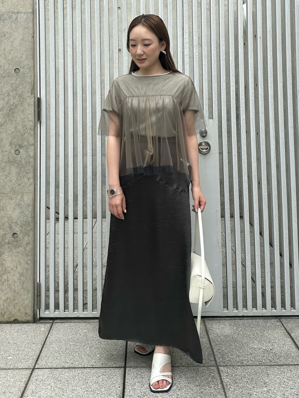 nana(PUBLIC TOKYO 神宮前 W)のスカート「【栃木県産】ヴィンテージリキッドサテンマーメイドスカート/ストレートシルエット」を使ったコーディネート