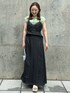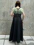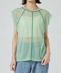 サラッとした生地なので暑い季節も肌に張り付くことなくストレスフリーなコーデです。グリーンのインナーは前後どちらでも着ていただけます◎