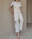 袖を通さないで着るだけでも季節感や、袖が長い心配もなくお洒落に着ていただけます! パンツにシアーをプラスして夏らしく軽やか見えを狙いました。