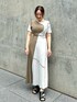 アシンメトリーなデザインが、着痩せ効果のあるワンピースです。着心地も良くて、ジャケット羽織ったりしても秋まで使えそうです!