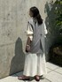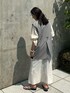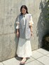 ジレベストを上から重ねて、きちっと感を出しました。サイドにレザーが入ってるのでフェミニンになりすぎないコーデが完成します。