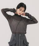 キャミビスチェをコーデにプラスするだけで、今っぽいスタイリングになります。シアーはニットのインナーとしても使えるようにハイネックになっているので着回し簡単です!
