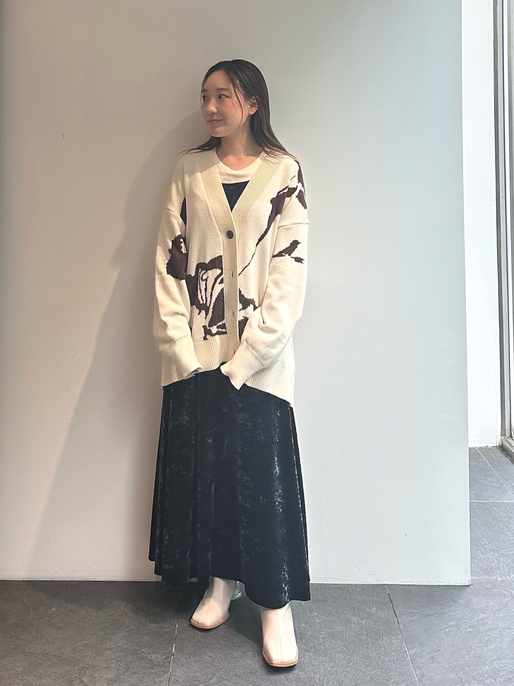 ベロアワンピだけだと、ドレッシーになるので、付属のパーツを取り外してカーディガン合わせでラフに着ています!