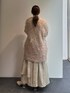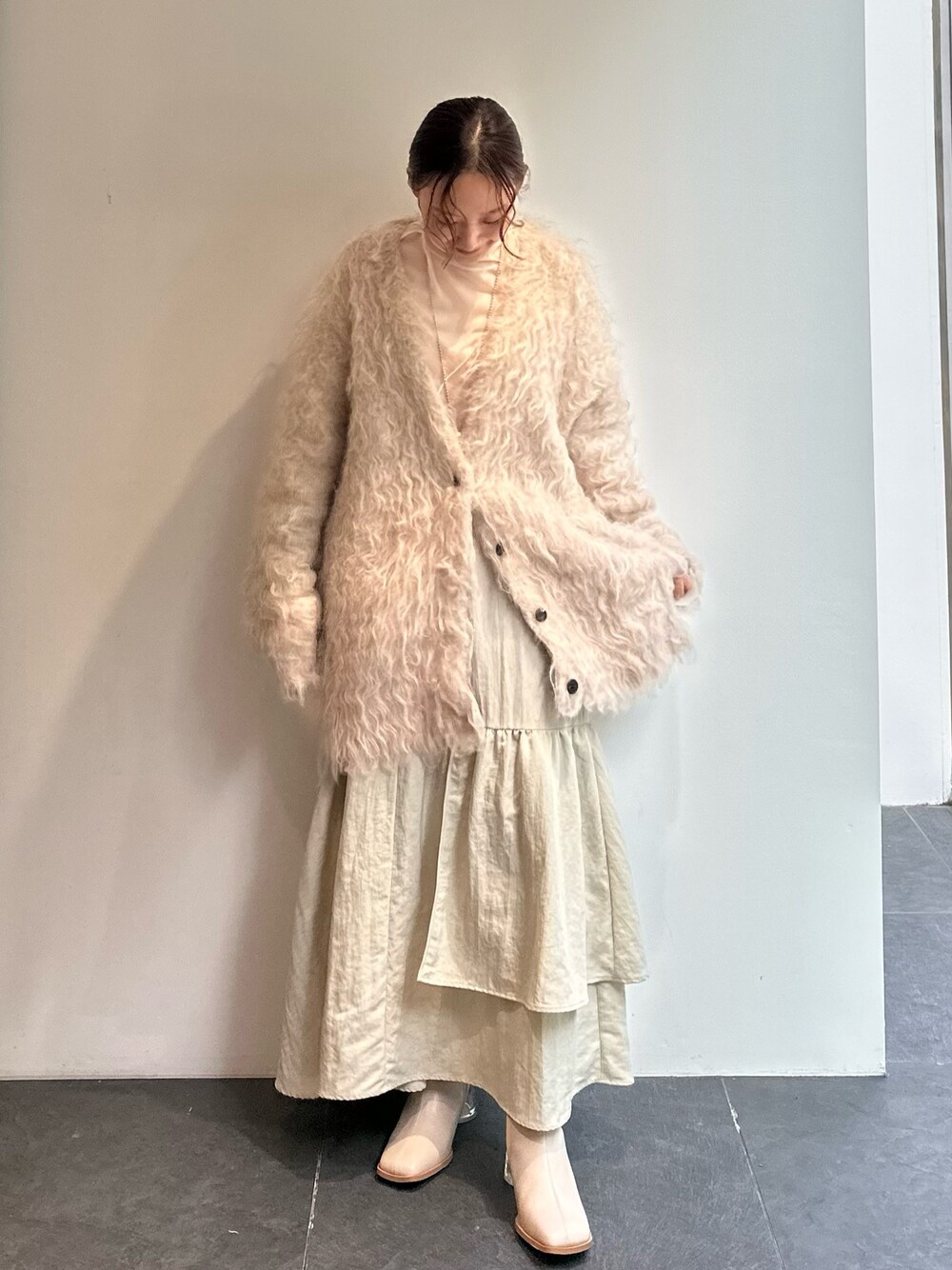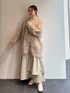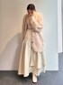 スカートがサラッとした表面なので、カーディガンやニットのような素材ととっても相性がいいです!ワントーンコーデも質感変化すると楽しめます◎
