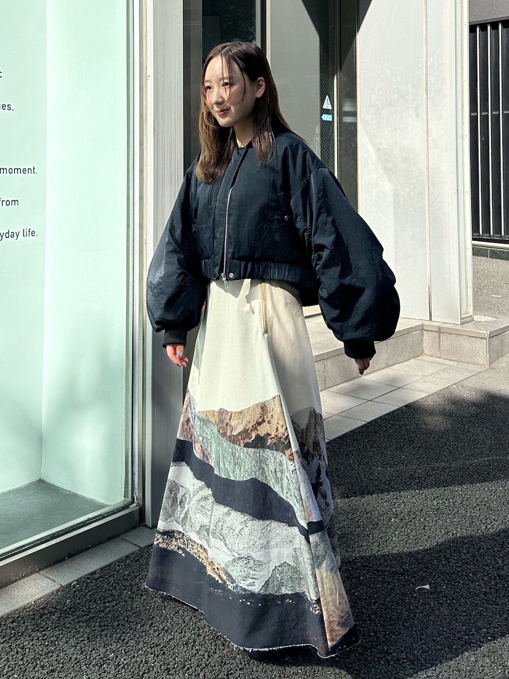 nana(PUBLIC TOKYO 神宮前 W)のブルゾン「ギャザースリーブMA-1」を使ったコーディネート
