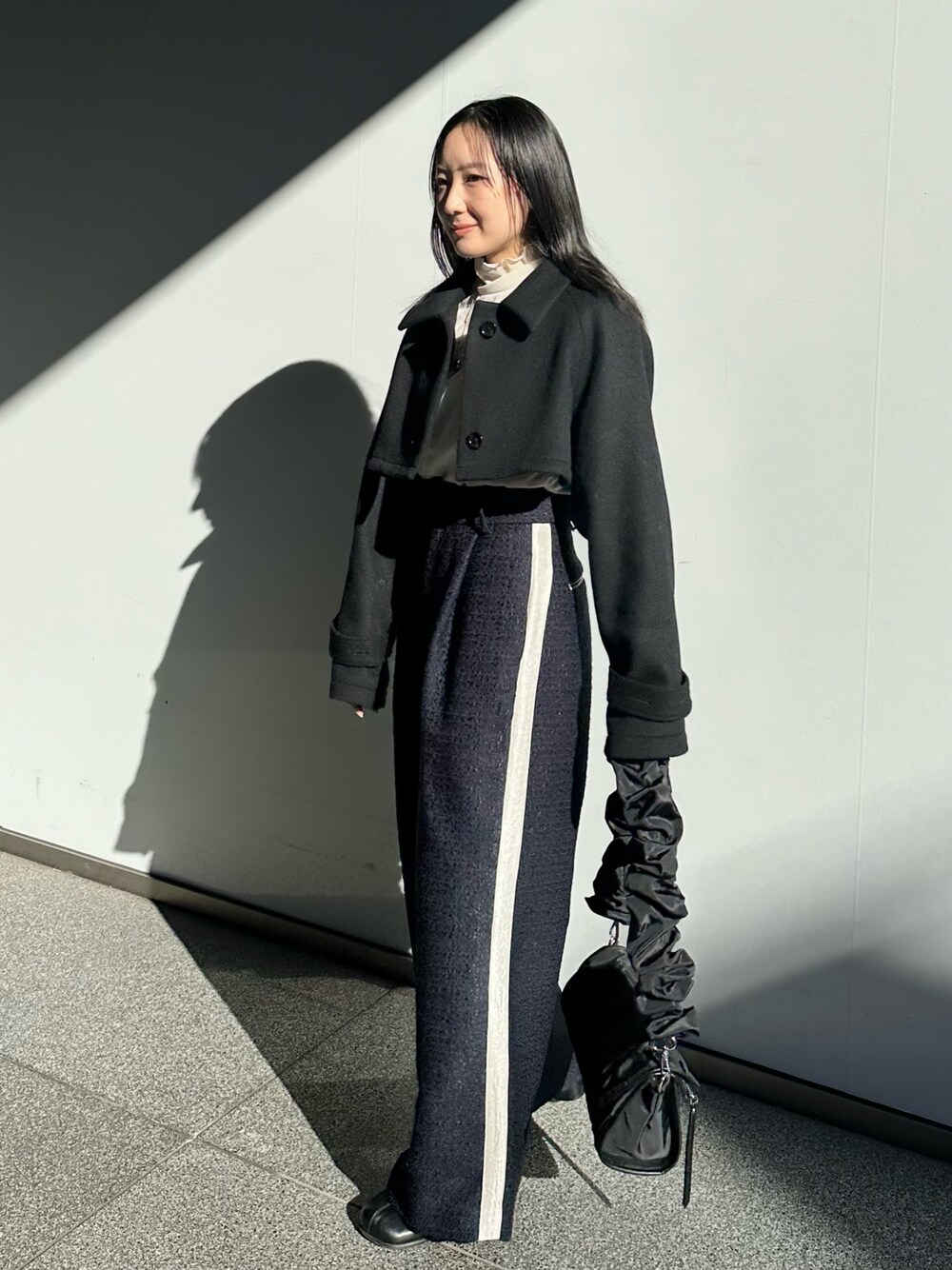 ジレコートの上のアウターだけを使ったコーディネートです!ツイードの質感も素敵で、サイドのラインもアクセントになって可愛いです!