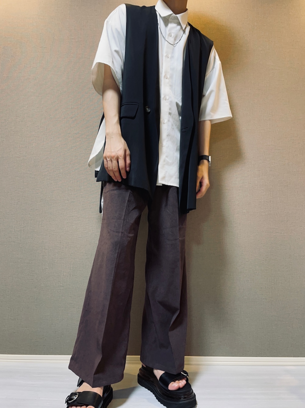 かだのスラックス「スエードライクワイドパンツ(HARE)」を使ったコーディネート