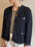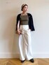 暑い残暑までたのしめるシックなスタイル。 金ボタンがアクセントに効いたかのこ編みのニットジャケットは、シャリ感のある素材なので通気性もよく暑い日にも重宝します◎ デコルテを綺麗に見せてくれる、スクエアネックのインナーが女っぽさをアップしてくれます。 合わせた新作のコモノも続々入荷中です◎