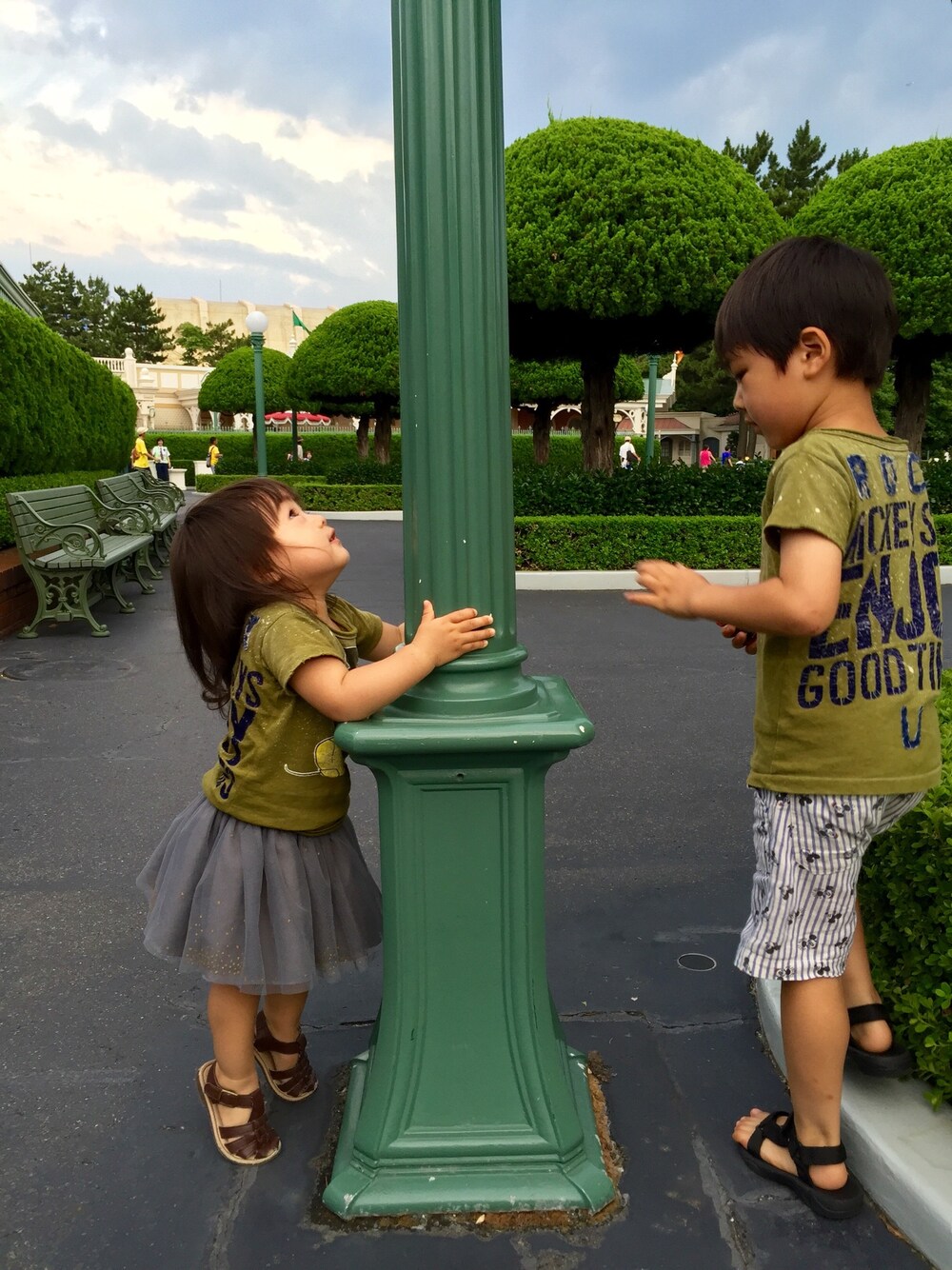 兄妹おそろいTシャツ 夏のディズニーは夕方からじゃないと体力がもたない…😱 年取ったなぁ…
