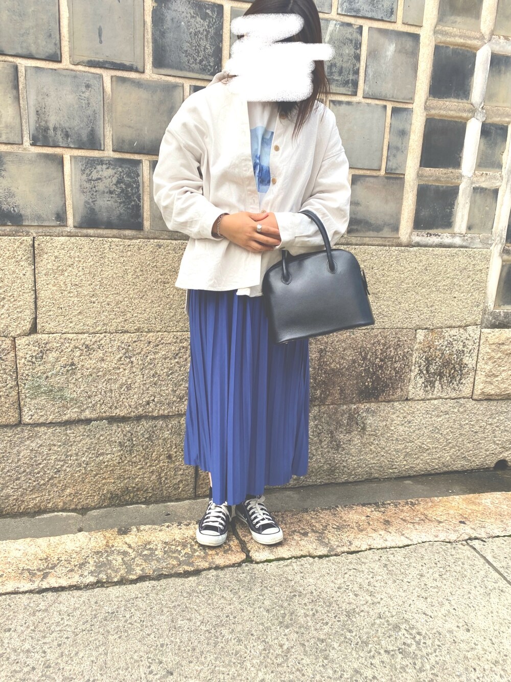 ご覧いただきありがとうございます😭 今日は青の気分だったので、 青で揃えてみました♩ 最近朝晩は寒くて昼間は あったかいから難しいですね😂