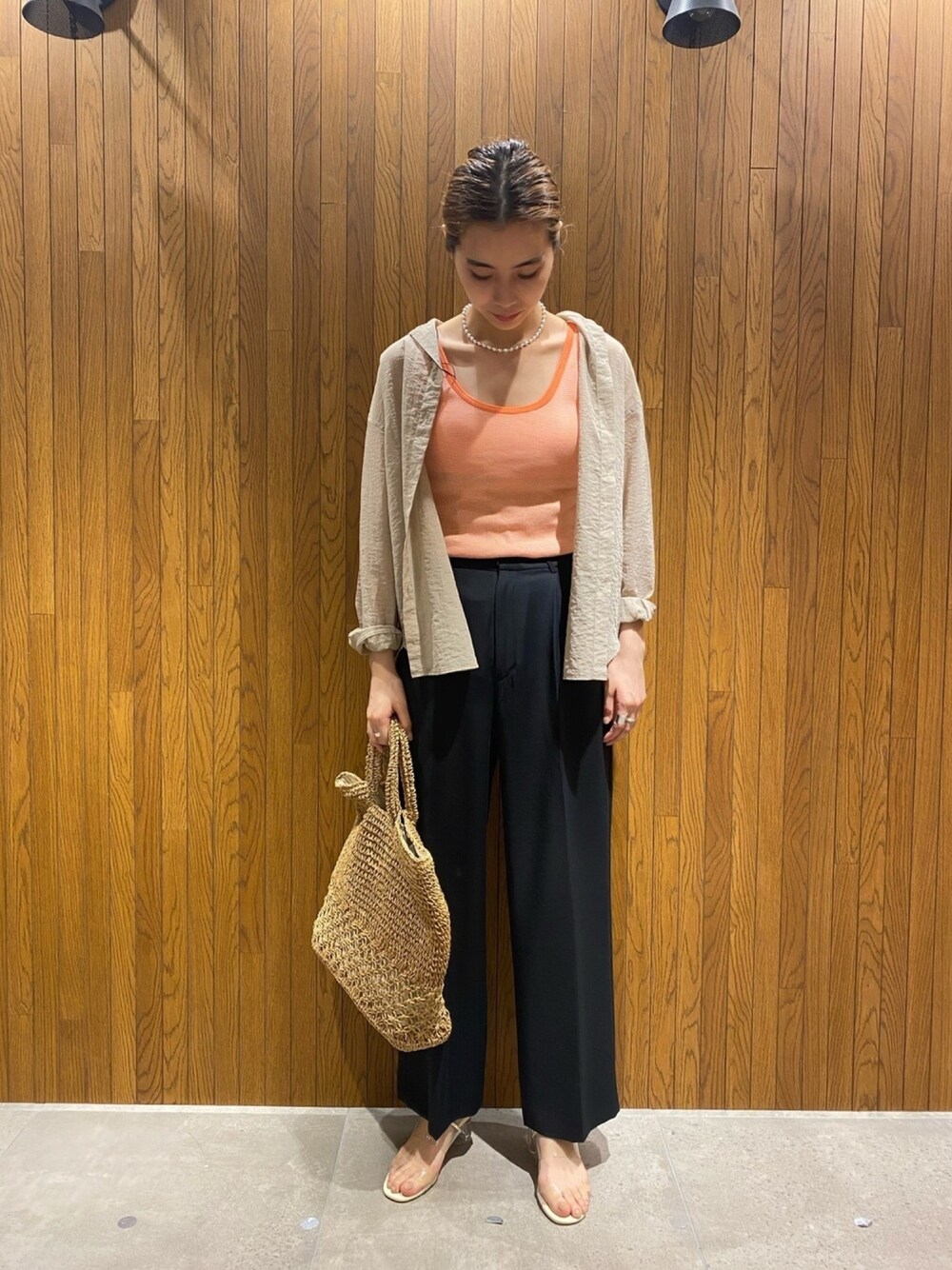 日焼け対策をされたい方にぴったりなコーディネートです◎ 暑くるしい印象が出ないように、小物で夏を演出するのがポイントです!