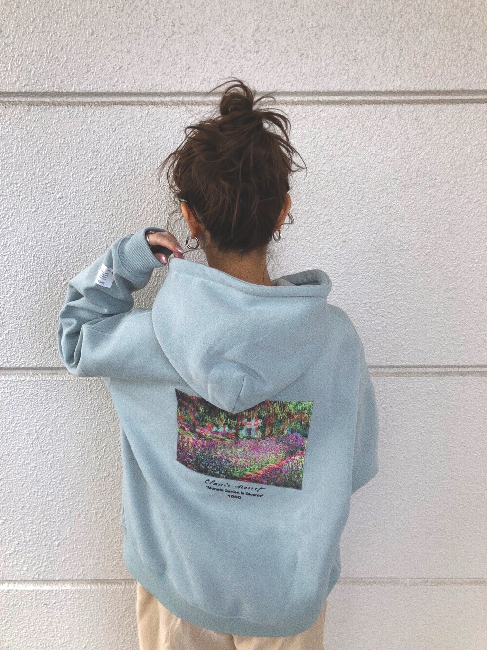 ochieのパーカー「【一部WEB限定】別注アートスウェット プルオーバースウェットパーカー"Monets Garten in Giverny"(フーディー)」を使ったコーディネート